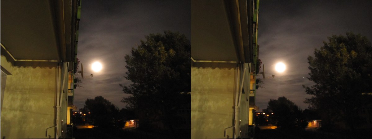 Zdjęcia z dzisiejszego spaceru w kolorze i w stereo oraz widoczki z domu - przez okno i wieczorem z balkonu ;-)